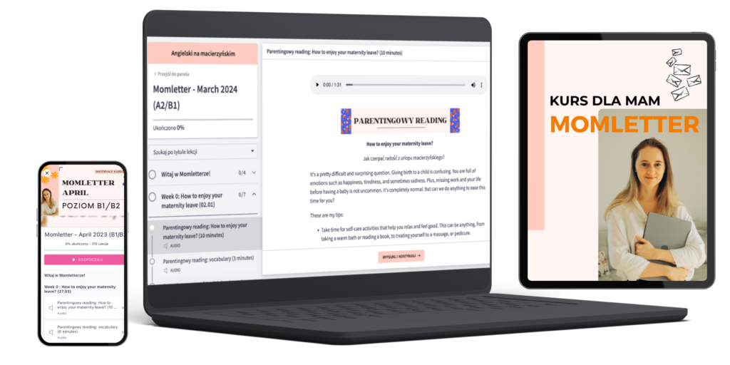 Jesteś mamą, która chce rozwijać swój angielski, ale brakuje Ci czasu? Momletter to kurs stworzony właśnie dla Ciebie – nauka w małych krokach, dopasowana do Twojej codzienności.